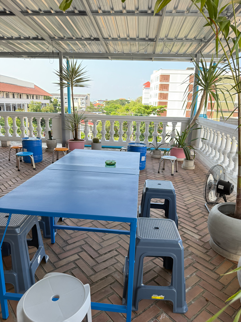 Twister Lounge features a large rooftop terrace with panoramic views and a warm, inviting ambiance enhanced by fairy lights, street-art-inspired décor, and cozy seating.